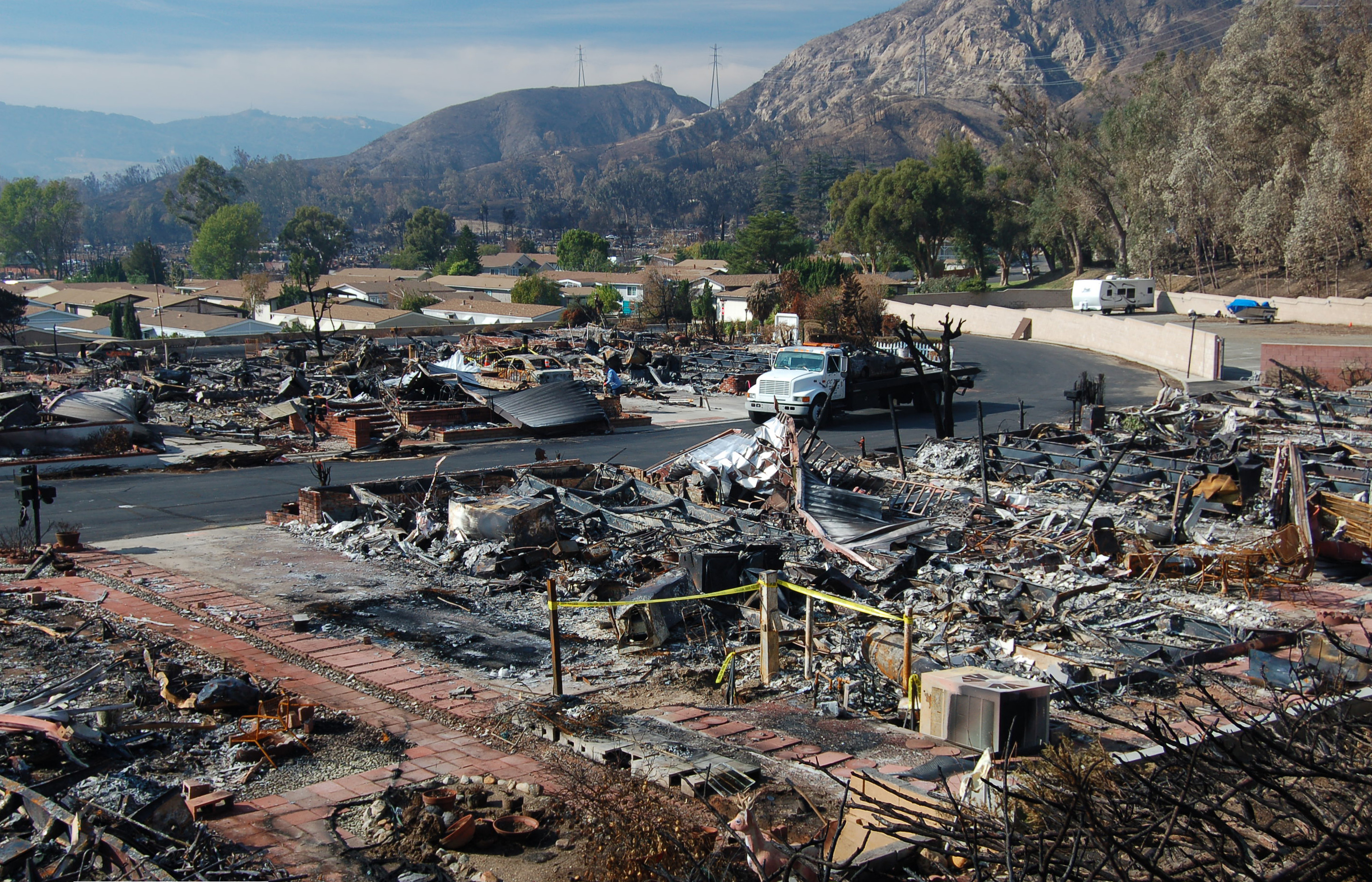 Note: The photo at the top of this post is of the remains of the Oakridge mobile home park in Sylmar which burned in a 2008 wildfire. (courtesy: Wikipedia)